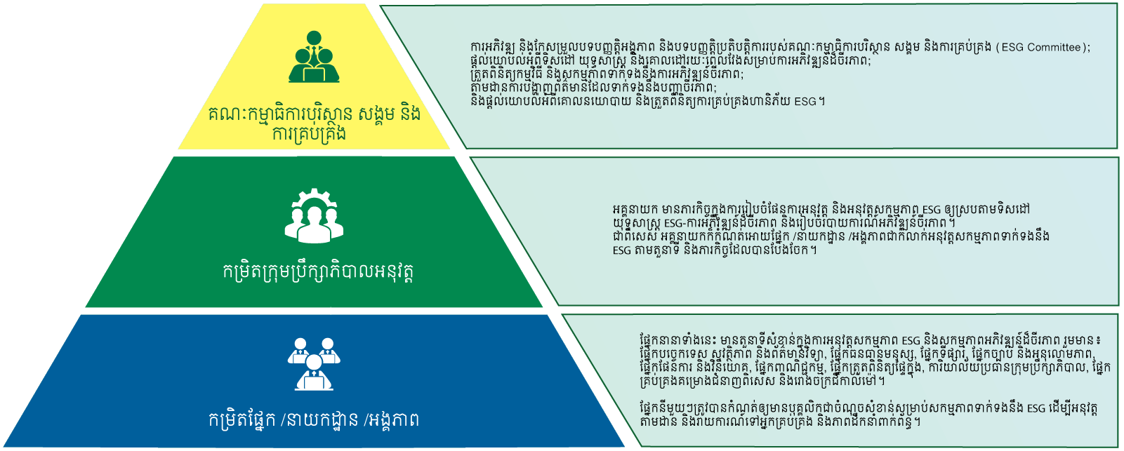 ដោយមានគោលបំណងអភិវឌ្ឍសេដ្ឋកិច្ចគួរឲ្យចងក្រងជាមួយការទទួលខុសត្រូវក្នុងការពារបរិស្ថាន និងចែករំលែកជាមួយសហគមន៍សង្គម យើងមិនត្រឹមតែផ្តោតលើជោគជ័យបច្ចុប្បន្នទេ ប៉ុន្តែថែមទាំងមានបំណងសាងសង់អនាគតបៃតងជារៀងរាល់ថ្ងៃ។